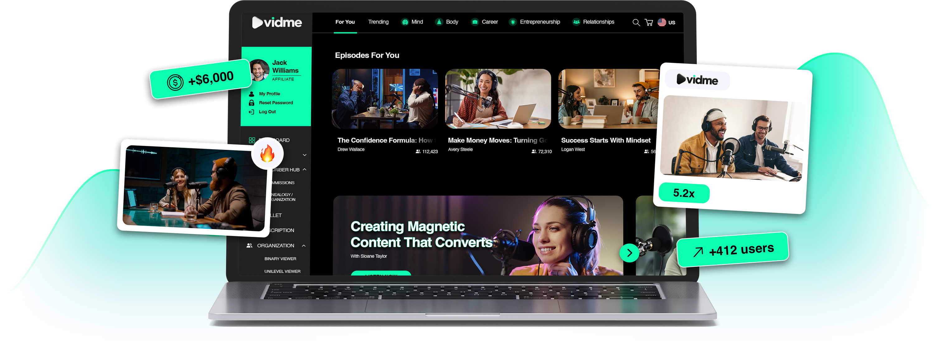Apply once, get your unique referral link, and share VidMe with anyone. When someone signs up for a paid membership through your link, you earn commissions on their active subscriptions. We handle all tracking, analytics, billing, and payouts automatically — so you can focus on sharing a platform you believe in.2. As a Creator